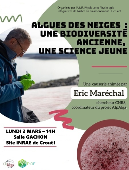 Le 2 mars 2026, Eric Maréchal animera une conférence intitulée "Algues des neiges : une biodiversité ancienne, une science jeune"